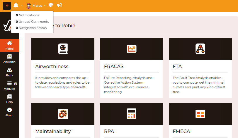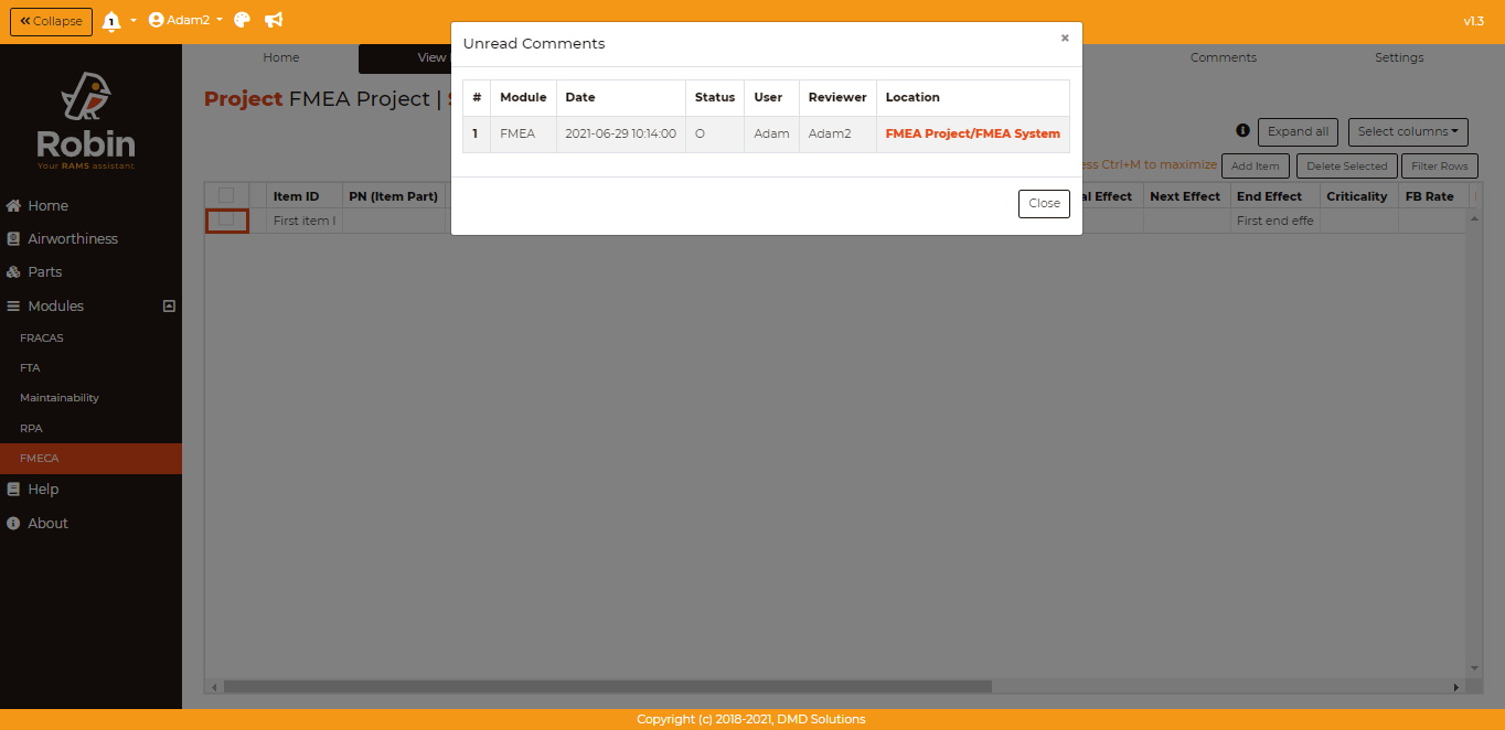 Unread Comments notifies the user when another user in their team comments on either a FTA or FMEA project.