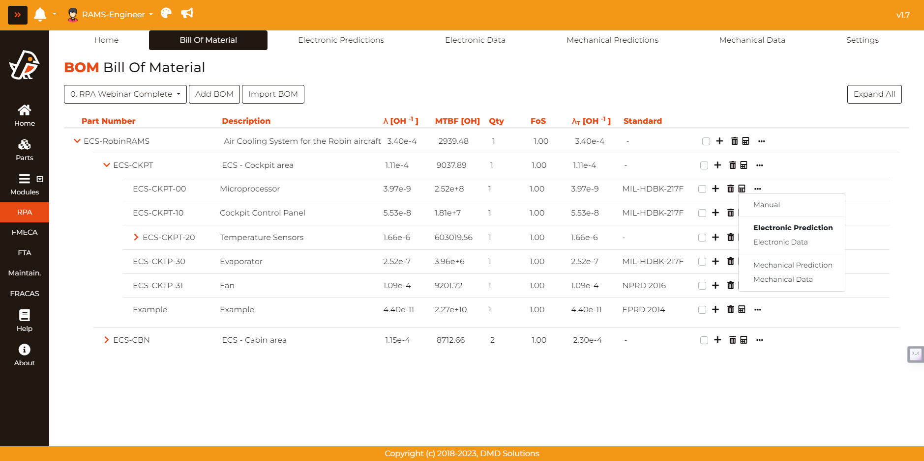 After computing the failure rate in the corresponding page, Robin gives the option to go back to the BOM. Note that, if the node has children, the computation is performed based on the failure rates of the children (see the RPA | Reliability Prediction Analysis section for computation details).